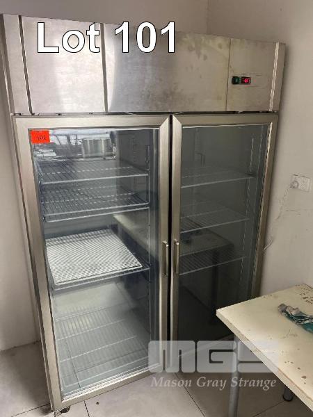CHEFS DISPLAY FRIDGE, GS 2 DOOR, 1220 LITRE, ILLUMINATED, DRO STAINLESS STEEL CASED
