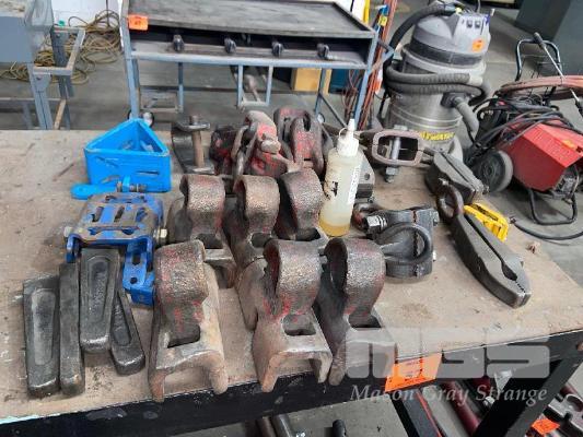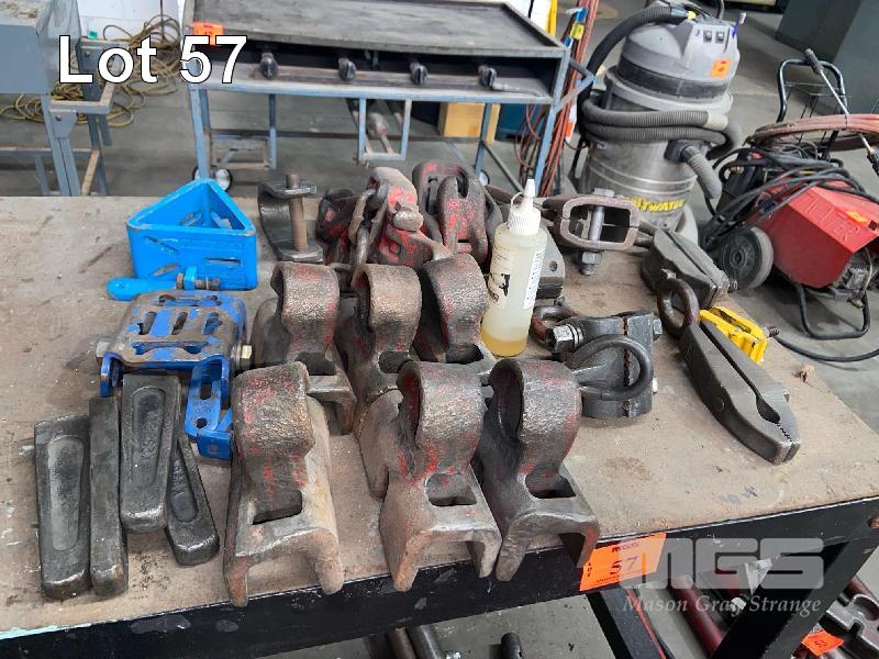 ASSORTED CHASSIS PULLING TOOLING INCLUDING CLAMPS, HOOKS, FEET & CHAIN DOGS