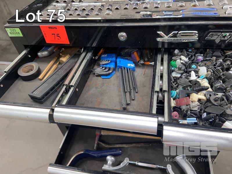 SCORPION TOOLS MULTI DRAWER TOOL CHEST TROLLEY COMPLETE WITH 1/2, 3/8 & 1/4 SOCKETS, LONG SERIES SOCKETS, MALLETS, PRY BARS, DRIVERS, PLIERS, GRIPS, SNIPS, CUTTERS, ALLEN KEYS, PUNCHES, METRIC/COMBINATION SPANNERS, CRASH SHOP TOOLS, ETC