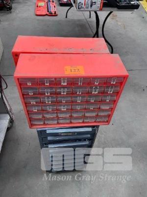 3 x MULTI DRAWER UNITS OF AUTOMOTIVE, PLUGS, CLIPS, FASTENERS, RIVETS, ETC