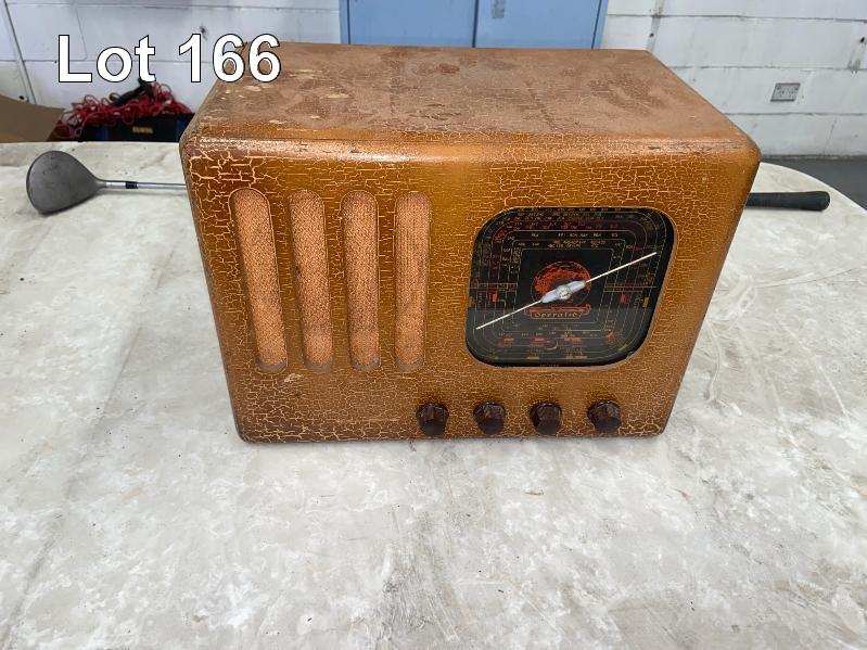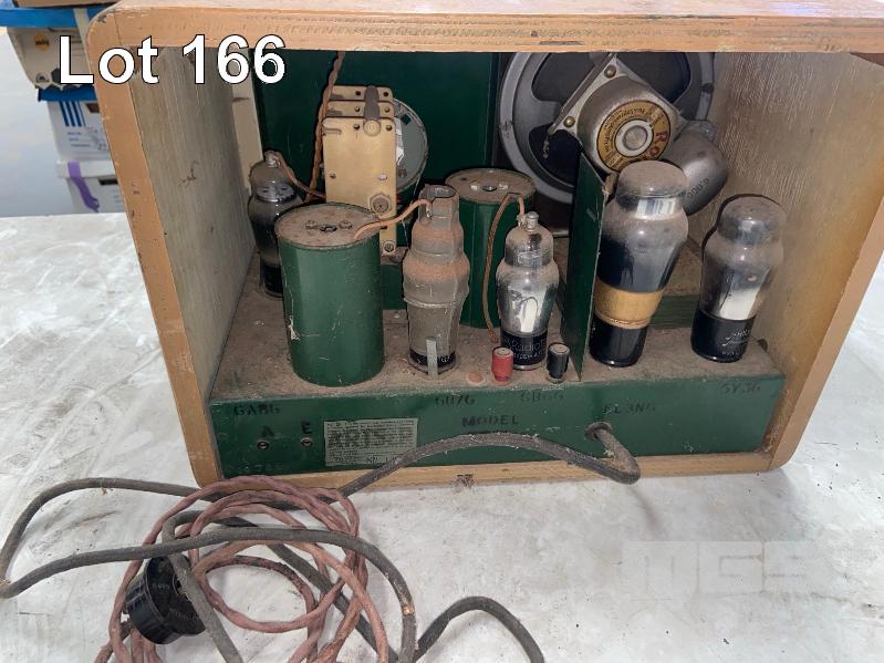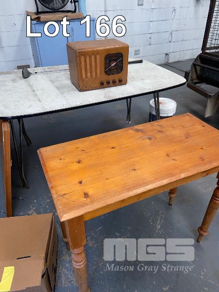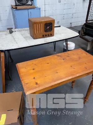 VENDORS GOT TO GO LOT . EARLY VALVE RADIO, OLD TABLE , PRINT, 2 PART DRUMS OF PAINT.
