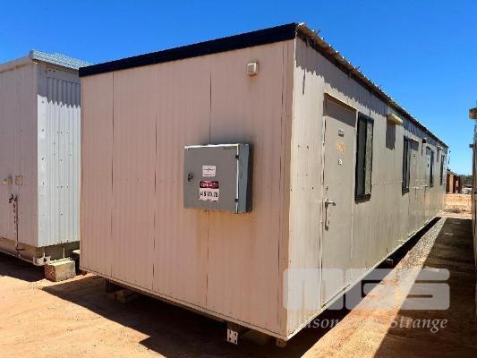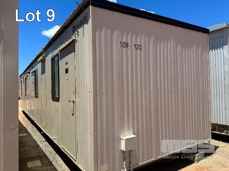 COLOURBOND CLAD 4 BEDROOM UNIT WITH ENSUITES DIMENSIONS 12 x 3m (APPROX) EACH ROOM WITH SPLIT SYSTEM AIR-CONDITIONER, CTV, BED, DESK , CUPBOARD, STAINLESS VANITY, DUAL FLUSH TOILET.