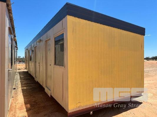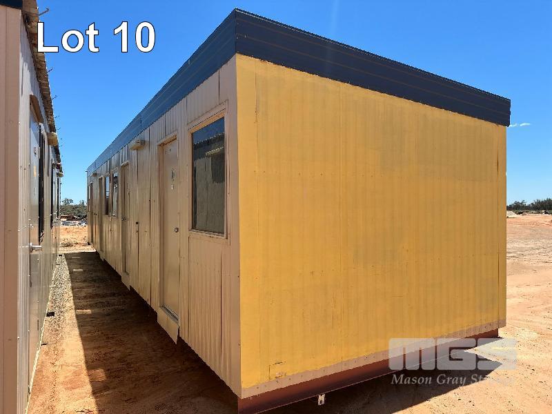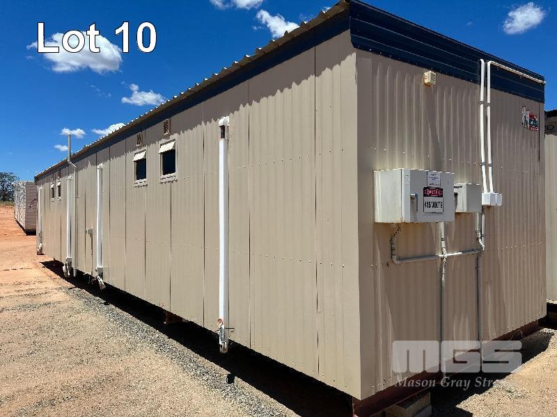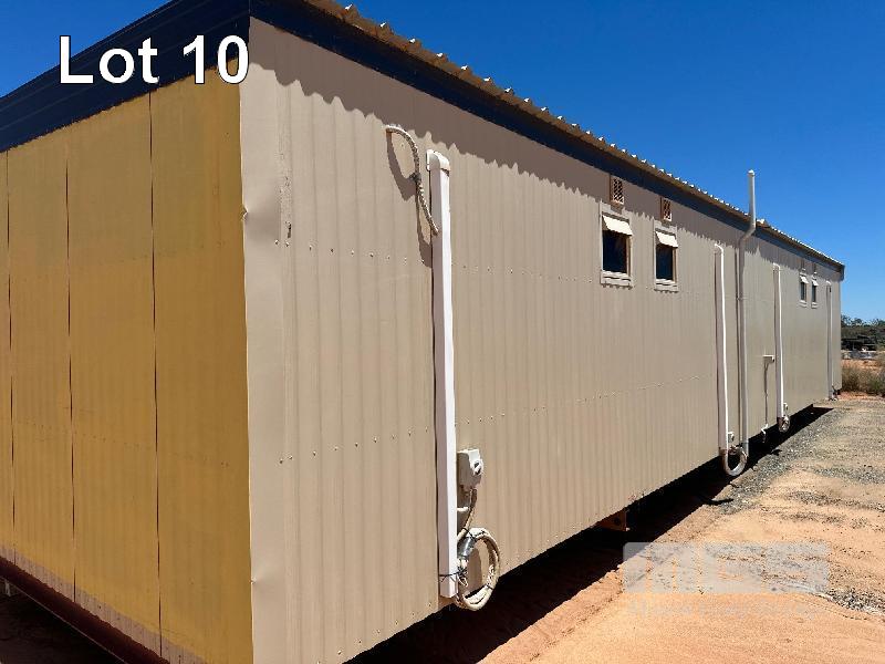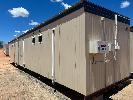 COLOURBOND CLAD 4 BEDROOM UNIT WITH ENSUITES DIMENSIONS 12 x 3m (APPROX) EACH ROOM WITH SPLIT SYSTEM AIR-CONDITIONER, CTV, BED, DESK , CUPBOARD, STAINLESS VANITY, DUAL FLUSH TOILET.
