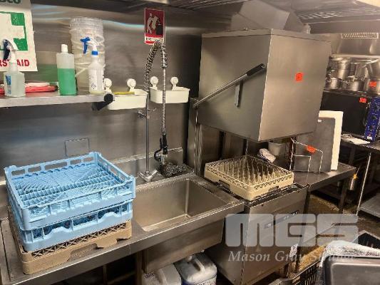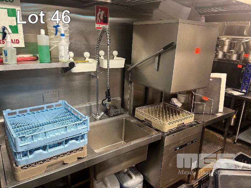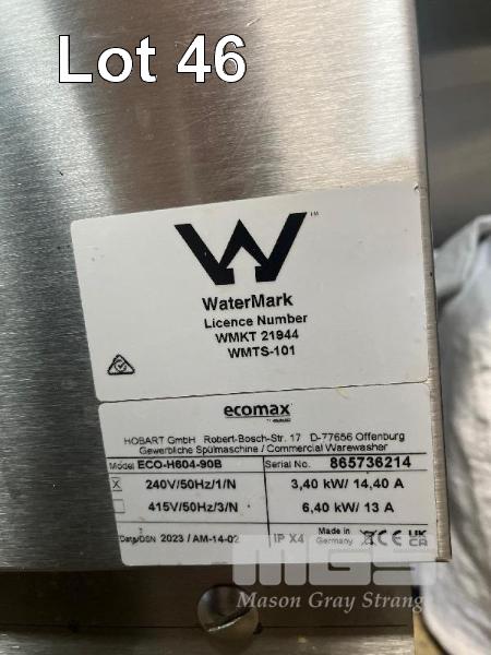 PASS THRU DISHWASHER, HOBART ECOMAX MOD: ECO-H604-90B WITH STAINLESS STEEL DEEP BOWL SINK, 1300 x 720mm, DISH WASH TAP & STAINLESS STEEL OUTFEED BENCH, 700 x 750mm