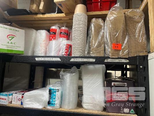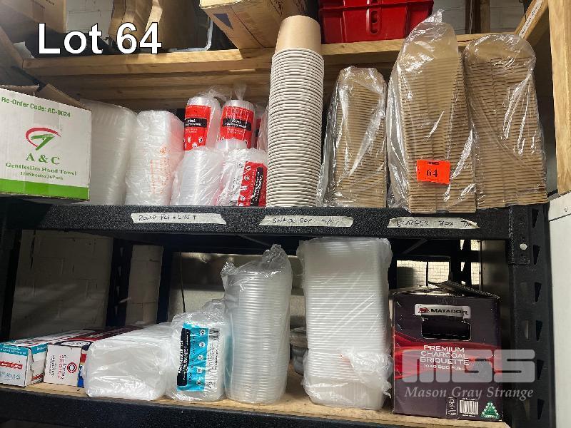 LARGE QUANTITY TAKEAWAY CONTAINERS, TIMBER SERVING PADDLES, NAPKINS & GLASS FLASKS
