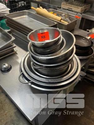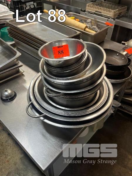 LARGE QUANTITY STAINLESS STEEL BOWLS, ASSORTED SIZES, 180mm (D) TO 400mm (D)