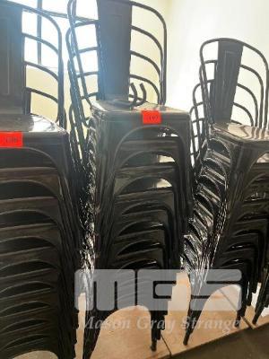 10 x BLACK STEEL CHAIRS, STACKABLE