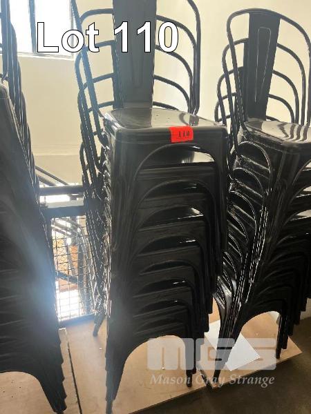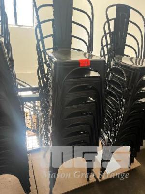 9 x BLACK STEEL CHAIRS, STACKABLE