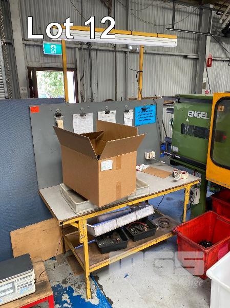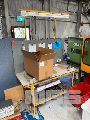 STEEL FRAME WORK BENCH, ILLUMINATED, BACK BOARD & SHELF, 1500 x 640 x 840mm (H)