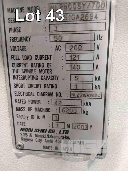 CNC LATHE, MORI SEIKI NL2500SY/700 HYDRAULIC PUMP TO CLAMP/UNCLAMP CHUCK IS NOT WORKING TOOL TURRET HAS LOT OF PLAY & NEEDS TO BE FIXED 6,200kg LIVE TOOLING UNIT NEEDS TO BE REPLACED. DRIVE MOTOR FOR LIVE TOOLING NEEDS TO BE REPLACED. DRIVE UNIT NEEDS TO BE REPLACED. MAIN SPINDLE IS IN WORKING CONDITION. SUB SPINDLE IS NOT WORKING ** LOCATED AT 9 DELORAINE ROAD, EDWARDSTOWN, SA**