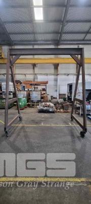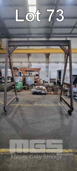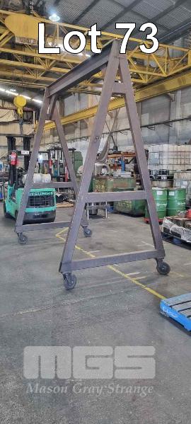 A-FRAME, HEIGHT TO HANGING POINT 3m LENGTH IN BETWEEN WORK AREA 2.8m WIDTH FROM SUPPORT WHEELS. 1.7m ** (LOCATED 9 DELORAINE RD, EDWARDSTOWN. S.A.) **