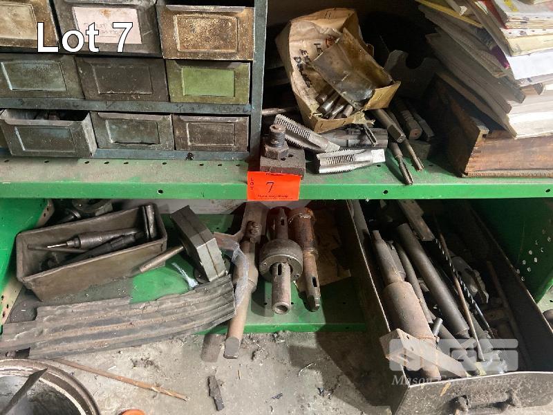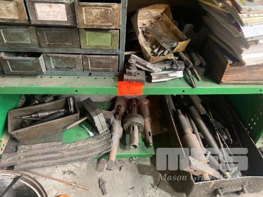 STEEL DRAWER SET WITH TAPS, ASSORTED SPLIT PINS & ASSORTED HARDWARE CONTENTS OF 2 x SHELVES