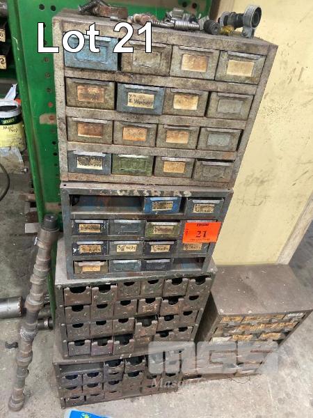5 STEEL DRAWER SETS & CONTENTS SCREWS, NUTS, BOLTS, ETC