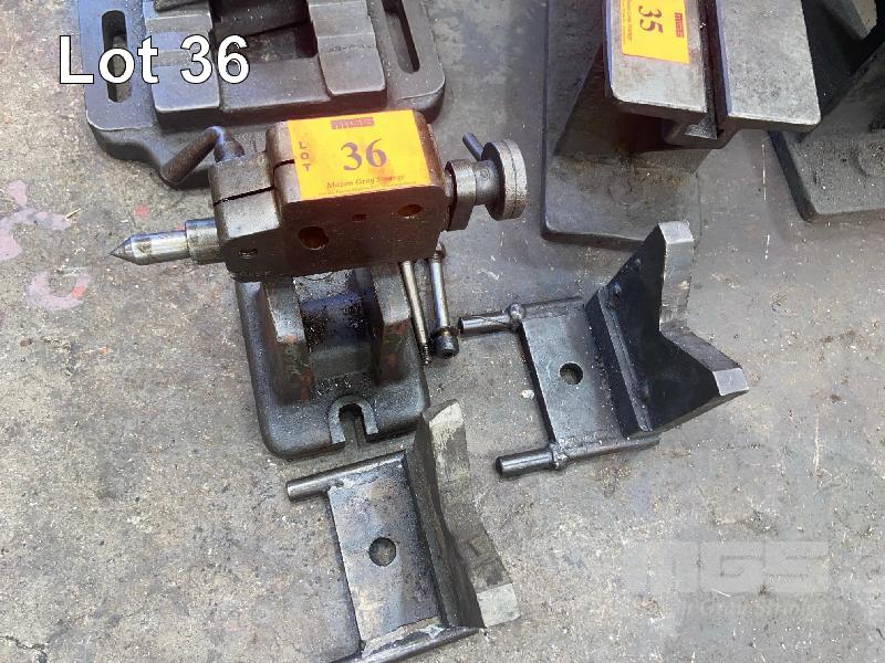 CAST IRON MACHINE TAILSTOCK, SWIVEL & PAIR VEE BLOCKS