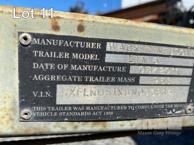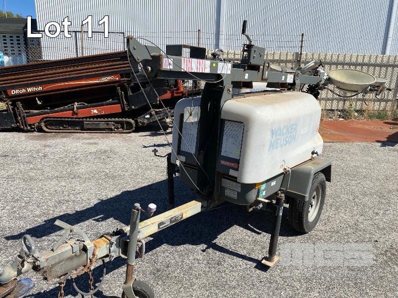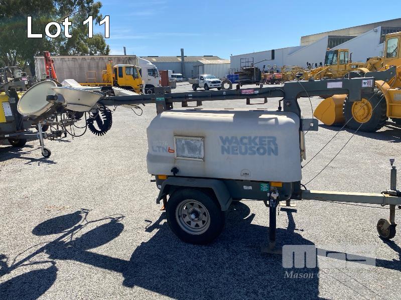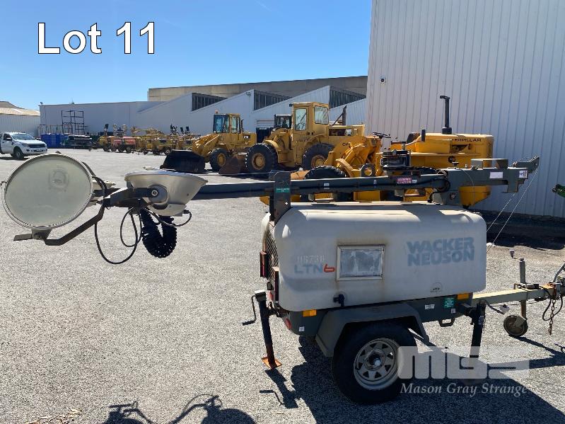 2011 LIGHTING TOWER, WACKER NEUSON MOD: LTN6 TRAILER MOUNTED, SINGLE AXLE BALL HITCH REG: NO PLATES VIN: 5XFLN0S1XBN003814 POWERED BY KOHLER 19kw 3 CYLINDER DIESEL ENGINE, HOURS: 4,950 SHOWING WINCH EXTENDABLE MAST, 4 x LIGHTS MH, 3 x STABILIZING LEGS, JOCKEY WHEEL & BRAKES ATM: 953kg