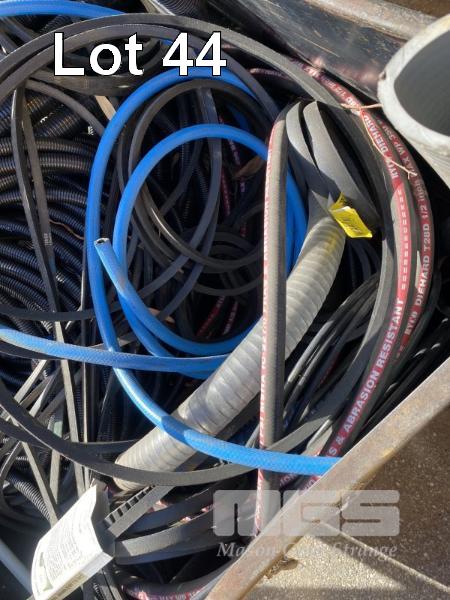 ASSORTED FAN/DRIVE BELTS, FLEXIBLE CONDUIT, HYDRAULIC & AIR HOSE, VACUUM HOSE, ETC