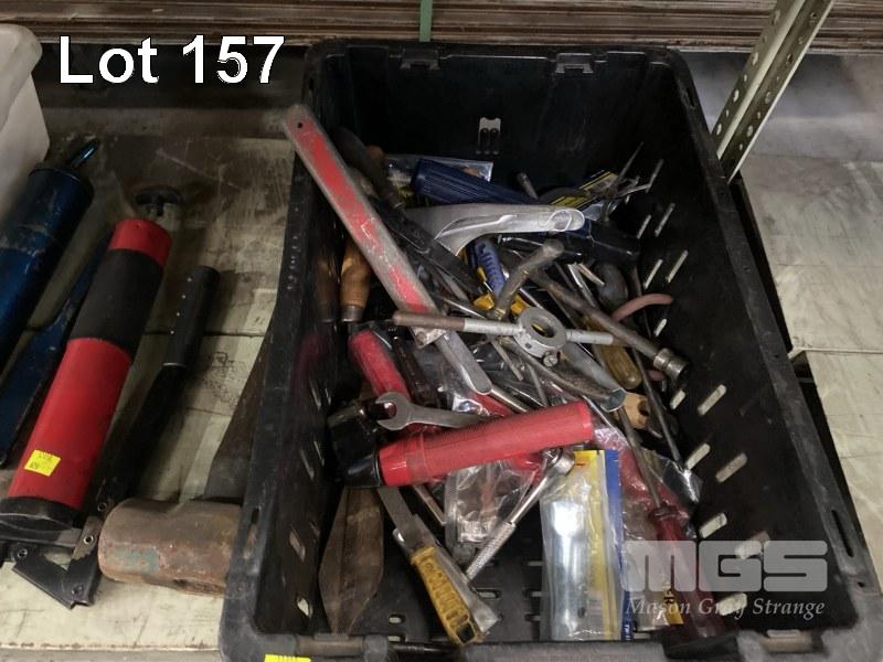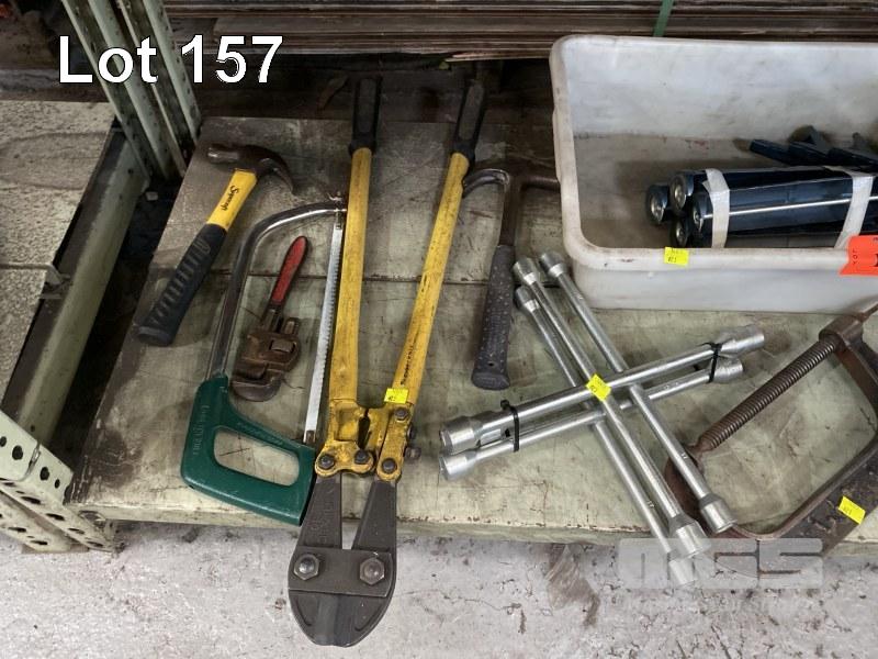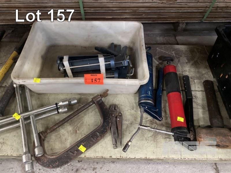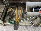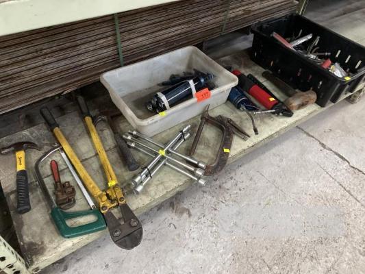 BOLT CUTTERS, 2 x GREASE GUNS, HAMMER, TYRE IRONS, HAND TOOLS, ETC
