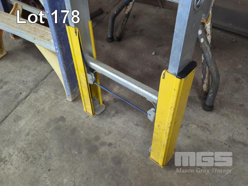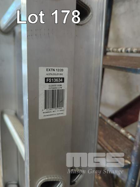 BAILEY ALUMINIUM EXTENSION LADDER WITH LEVELLING FEET. 3.83 - 6.27 M. 130 KG