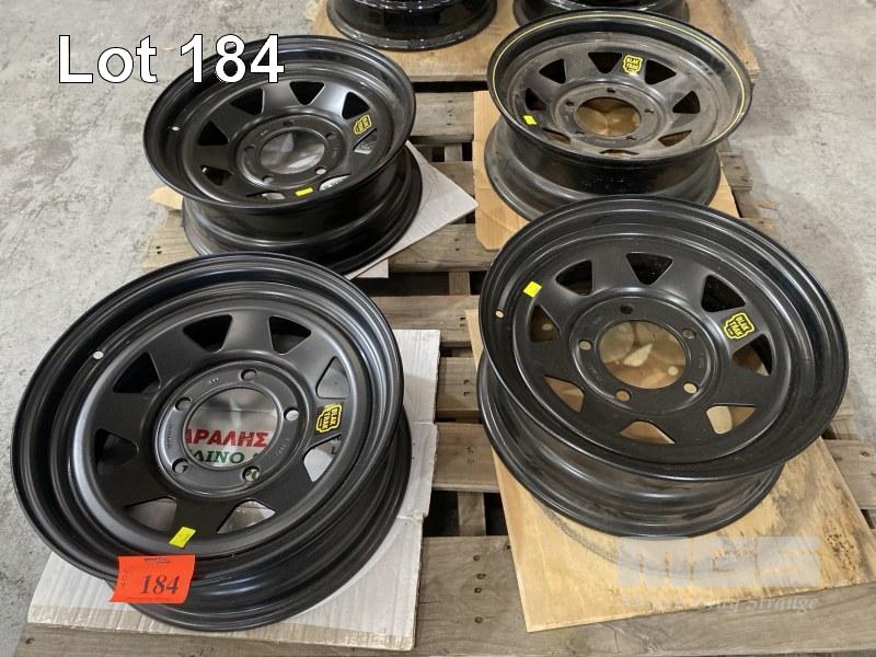 SET 4 NEW STEEL RIMS, ROH, BLAK TRAK, TRAK 2, 14", 5 STUD