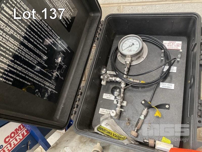 FLOW TEST UNIT WITH PRESSURE GAUGE IN CARRY CASE WITH ASSORTED HOSE FITTINGS & COMPONENTS