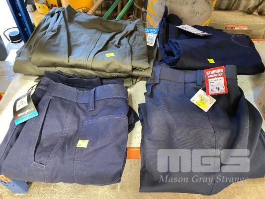 6 x PAIRS WORK PANTS INC STUBBIES, KING GEE, ETC