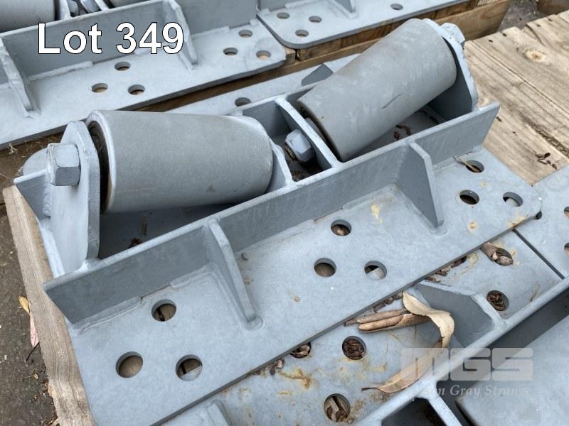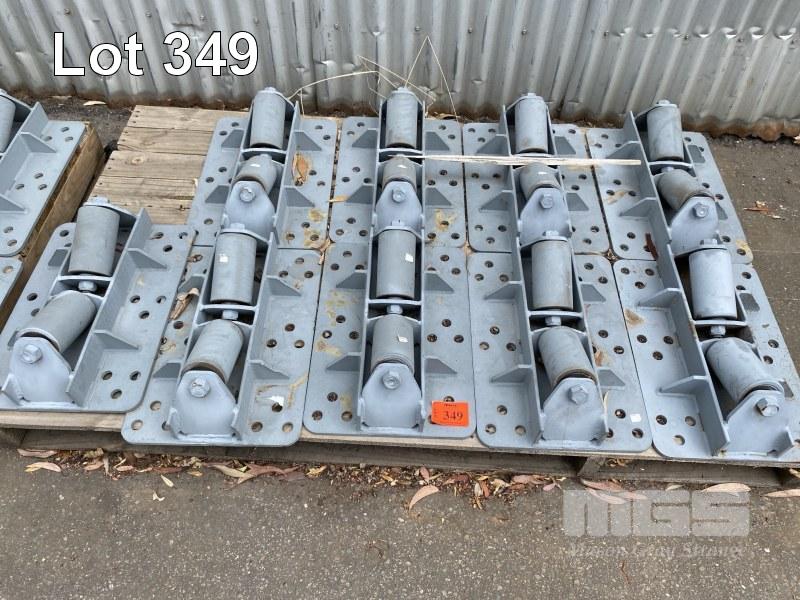 9 x ROLLER ASSEMBLIES, TWIN ANGLED ROLLER, 480 x 320mm, SUIT PIPE