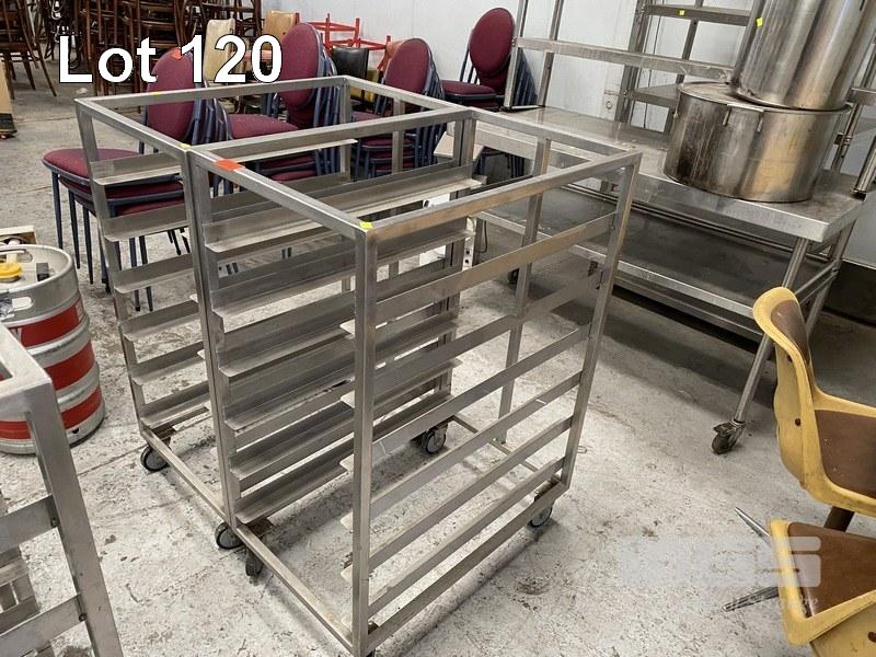 2 X STAINLESS STEEL MOBILE TRAY TROLLEYS, 58 X 83CM, 6 TIER