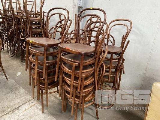 23 x BENTWOOD STYLE CAFE CHAIRS, STAINED TIMBER