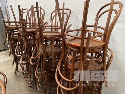 31 x BENTWOOD STYLE CAFE CHAIRS, STAINED TIMBER