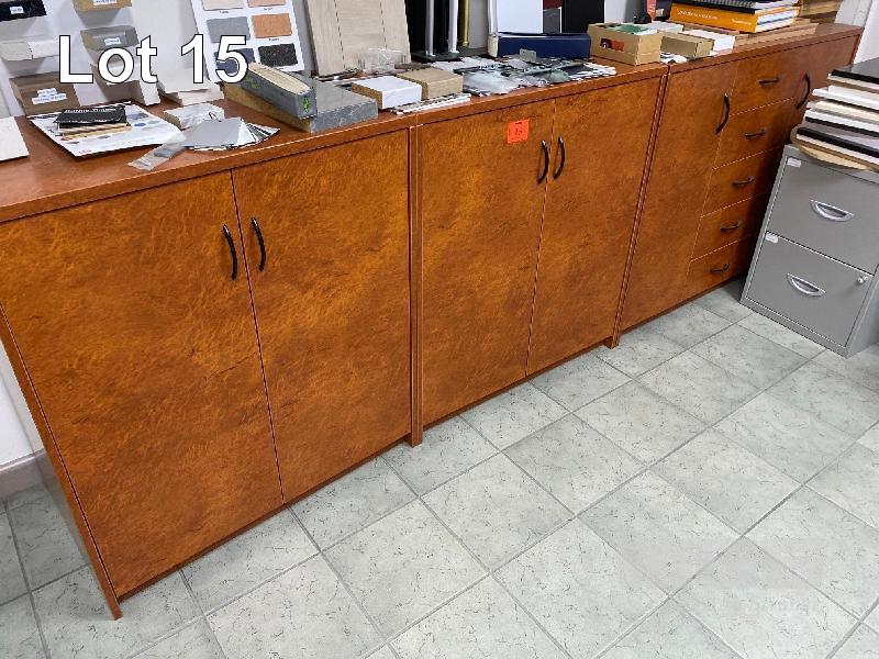 3 x MATCHING TIMBER LAMINATE CUPBOARDS & DRAWER UNITS,