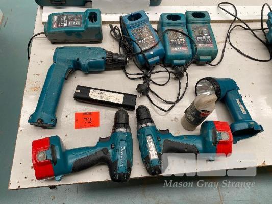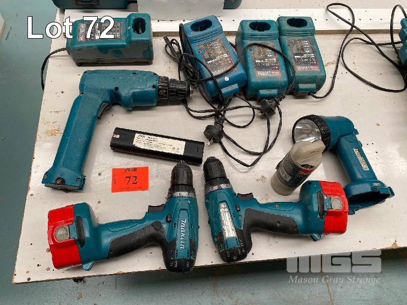 ASSORTED MAKITA CORDLESS POWER TOOLS INCLUDING 3 x DRILLS, 1 x LIGHT & 4 x CHARGERS