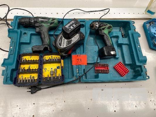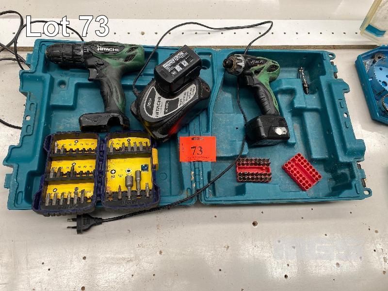 HITACHI CORDLESS POWER TOOLS INCLUDING TEK GUN & DRILL, CHARGER, 2 x BATTERIES & DRIVE BITS