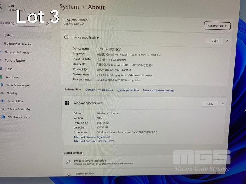 ALL-IN-ONE PC, DELL OPTIPLEX 7460, CORE i7 8700 (8TH GEN) @ 3.2GHz, 16GB DDR4 RAM, 512GB NVMe M.2 SSD, INBUILT 23.8" FHD TOUCHSCREEN (1920x1080), INTEL HD VIDEO, WEBCAM, 5 x USB, 1 x USB-C, WINDOWS 11 HOME INSTALLED, KEYBOARD & MOUSE S/N:FCNCHY2