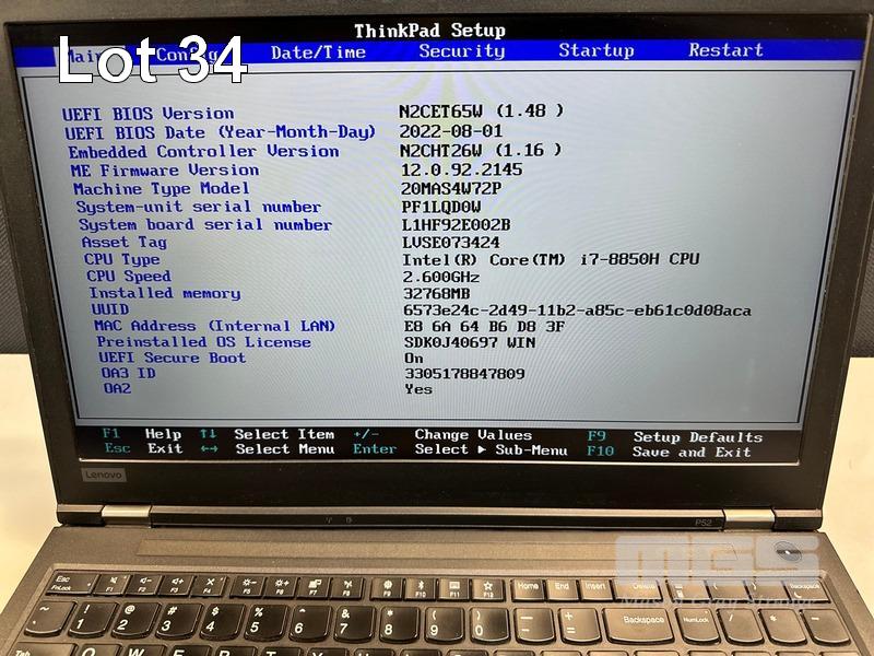 LAPTOP, LENOVO THINKPAD P52 MOBILE WORKSTATION, TYPE 20MA, CORE i7 8850H (8TH GEN) @ 2.6GHz, 32GB DDR4 RAM, 512GB NVMe M.2 SSD, 15.6" WIDESCREEN (1920x1080), 4GB NVIDIA QUADRO P2000 VIDEO, Wi-Fi, BLUETOOTH, WINDOWS 11 PRO INSTALLED & POWER SUPPLY (NOTE: MARKS & SPOTS ON SCREEN) S/N:PF1LQD0W