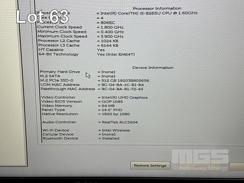 LAPTOP, DELL LATITUDE 5400, CORE i5 8265U (8TH GEN) @ 1.6GHz, 8GB DDR4 RAM, 512GB NVMe M.2 SSD, 14" WIDESCREEN (1920x1080), INTEL UHD GRAPHICS 620, Wi-Fi, BLUETOOTH, WINDOWS 11 HOME INSTALLED & POWER SUPPLY S/N:GLD25Y2
