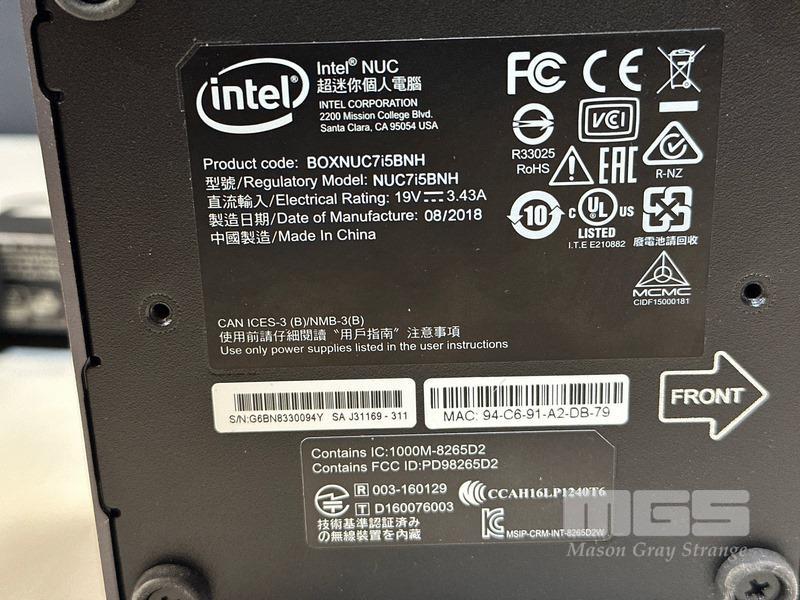 DESKTOP PC, INTEL NUC7i5BNH MINI, CORE i5 7260U (7TH GEN) @ 2.2GHz, 8GB DDR4 RAM, 120GB M.2 SSD, Wi-Fi, BLUETOOTH, WINDOWS 10 PRO INSTALLED & POWER SUPPLY (NO KEYBOARD, NO MOUSE) S/N:G6BN8330094Y
