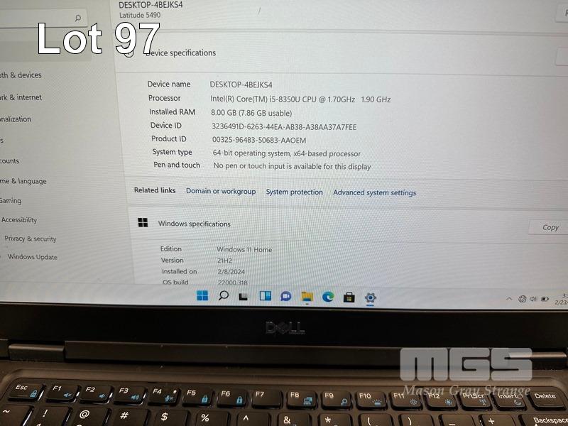 LAPTOP, DELL LATITUDE 5490, CORE i5 8350U (8TH GEN) @ 1.7GHz, 8GB DDR4 RAM, 512GB M.2 SSD, 14" WIDESCREEN (1920x1080), INTEL UHD GRAPHICS 620, Wi-Fi, BLUETOOTH, WINDOWS 11 HOME INSTALLED & POWER SUPPLY (NOTE: SMALL SCRATCH ON SCREEN) S/N:B3J6KR2