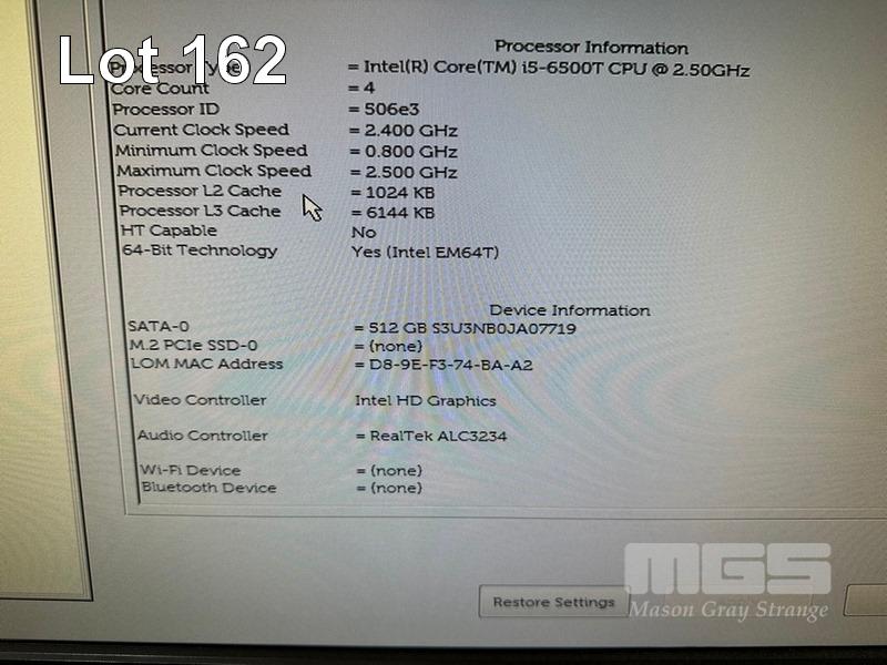 DESKTOP PC, DELL OPTIPLEX 3050 MICRO, CORE i5 6500T (6TH GEN) @ 2.5GHz, 8GB DDR4 RAM, 512GB SSD, INTEL HD VIDEO, 6 x USB, WINDOWS 10 HOME INSTALLED (NO POWER SUPPLY, NO KEYBOARD, NO MOUSE) S/N:1MRYPM2
