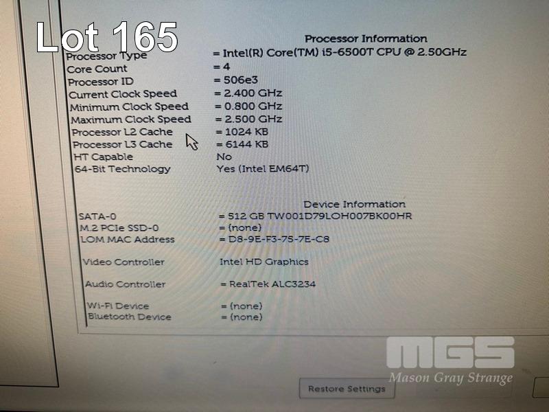 DESKTOP PC, DELL OPTIPLEX 3050 MICRO, CORE i5 6500T (6TH GEN) @ 2.5GHz, 8GB DDR4 RAM, 512GB SSD, INTEL HD VIDEO, 6 x USB, WINDOWS 10 HOME INSTALLED (NO POWER SUPPLY, NO KEYBOARD, NO MOUSE) S/N:46R0QM2