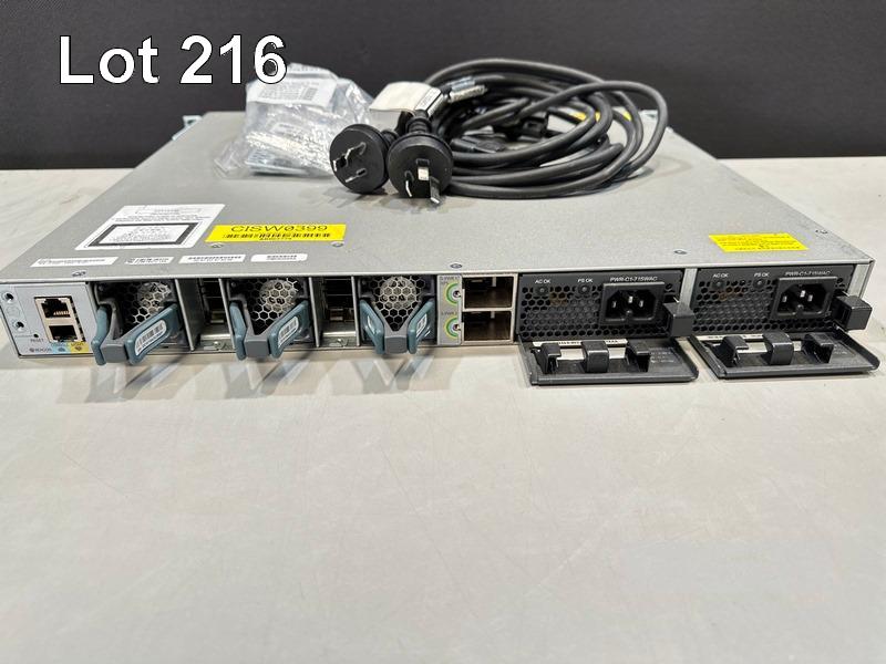 CISCO CATALYST 3850 XS 10G SFP+ 24-PORT SWITCH, WS-C3850-24XS-S V01 2 x PWR-C1-715WAC PSU WITH IEC-C15 NOTCH POWER CABLES S/N:FCW1947C155