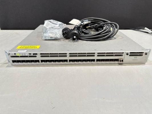 CISCO CATALYST 3850 XS 10G SFP+ 24-PORT SWITCH, WS-C3850-24XS-S V01 2 x PWR-C1-715WAC PSU WITH IEC-C15 NOTCH POWER CABLES S/N:FCW1943F15D