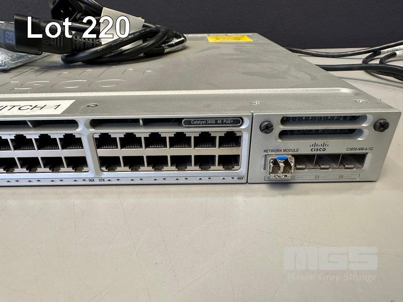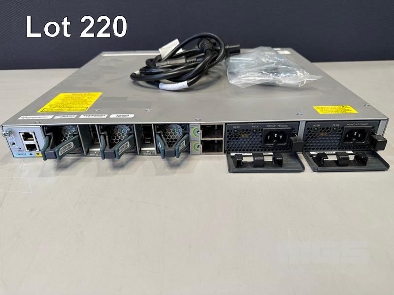CISCO CATALYST 3850 48 PoE+ 48-PORT SWITCH, WS-C3850-48P-L V07 C3850-NM-4-1G NETWORK MODULE, 2 x PWR-C1-715WAC PSU WITH ICE-C14 TO C15 NOTCH POWER CABLES S/N:FCW2201D00M