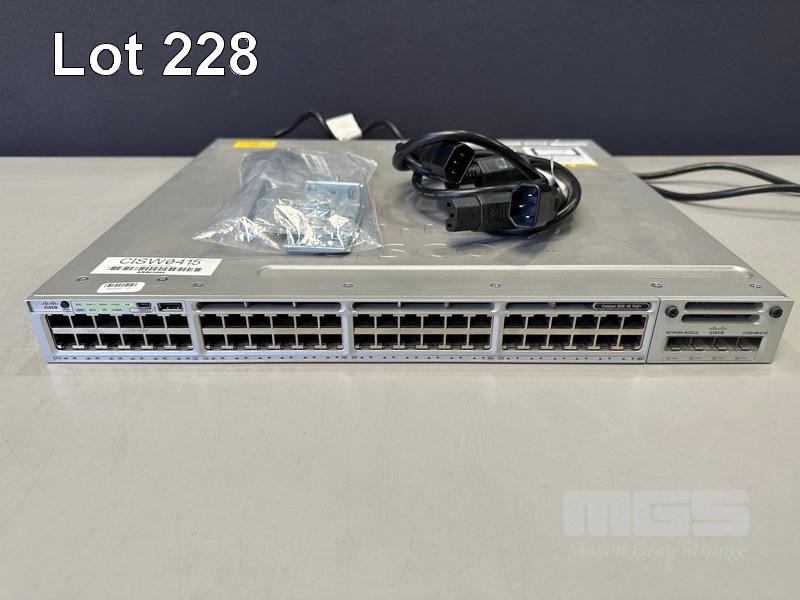 CISCO CATALYST 3850 48 PoE+ 48-PORT SWITCH, WS-C3850-48P-L V06 C3850-NM-4-1G NETWORK MODULE, 2 x PWR-C1-715WAC PSU WITH ICE-C14 TO C15 NOTCH POWER CABLES S/N:FCW1951F15K