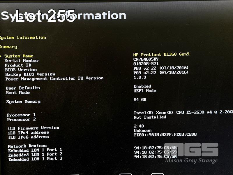 RACKMOUNT SERVER, HP PROLIANT DL360 Gen9, 1U, XEON E5-2640 v4 @ 2.2GHz, 64GB ECC DDR4 RAM, 2 x 900GB SAS HDD, 2 x 300GB SAS HDD, 2 x 500W PSU (NO CABLES) (NOTE: NON-MATCHING PSU MODELS, MESSAGE "HP SMART STORAGE BATTERY 1 FAILURE") S/N:CN764605RY