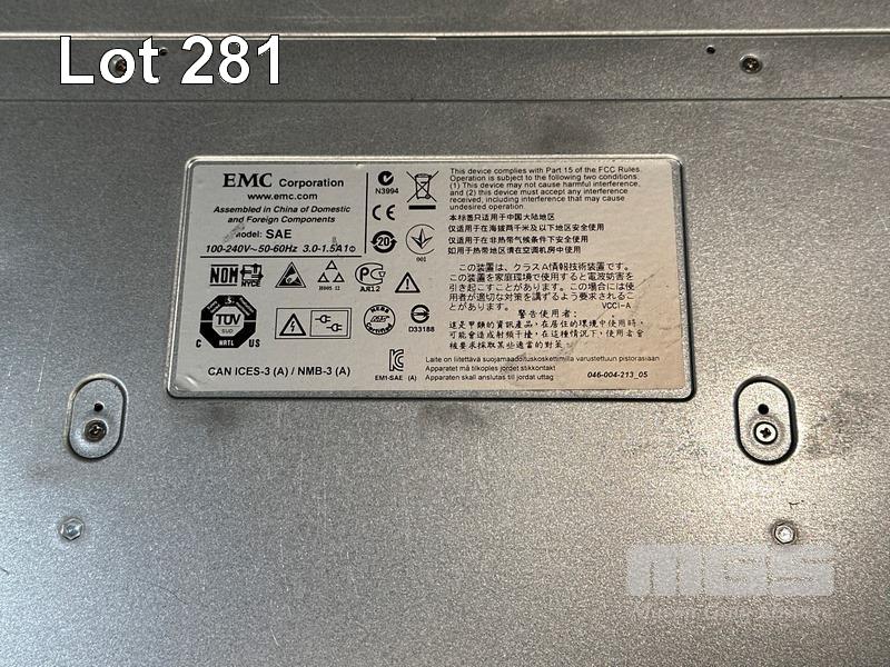 RACKMOUNT STORAGE ARRAY, EMC, MODEL SAE, 2U, 10 x 100GB SAS SSD, 9 x 600GB SAS HDD, 2 x CONTROLLERS, 2 x PSU (NO CABLES) S/N:JWXEC132900916