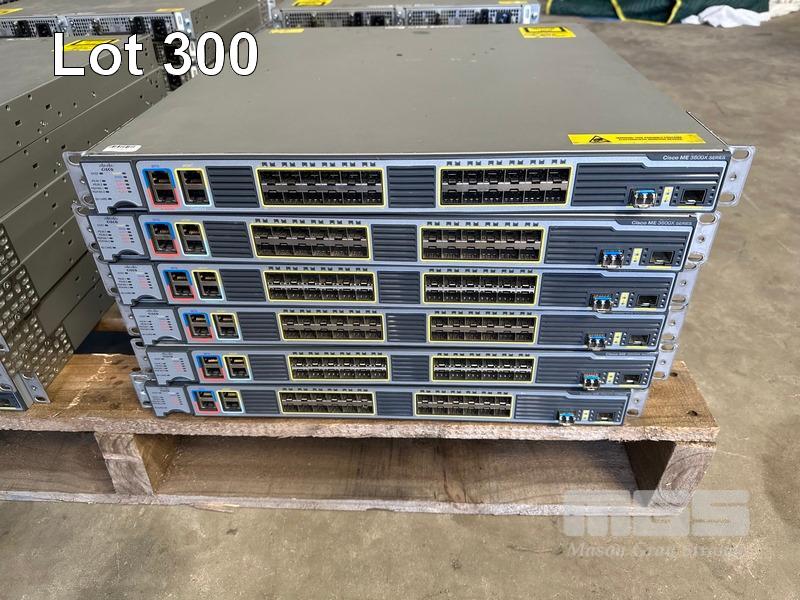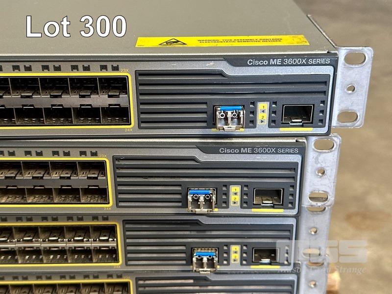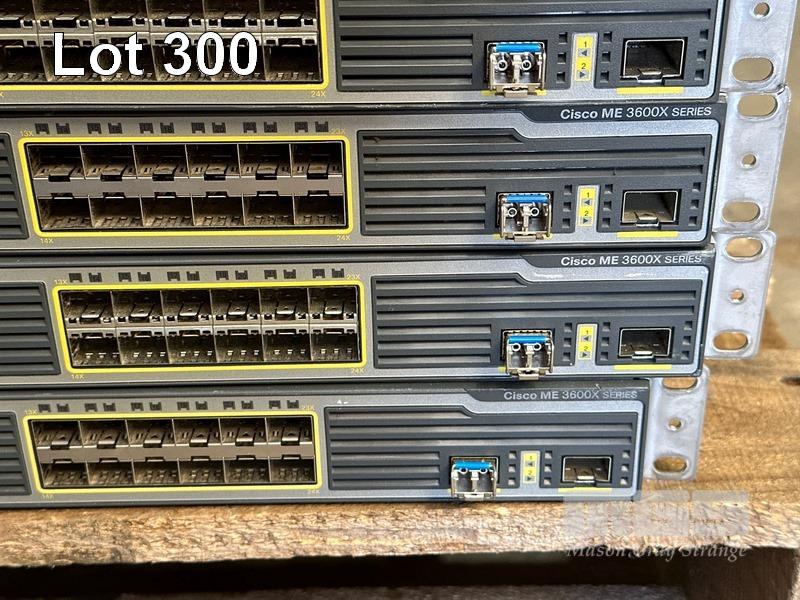6 x CISCO ME 3600X SERIES 24-PORT SWITCHES, ME-3600X-24FS-M V01, EACH 2 x PSU S/N:FOC1549V3KT, FOC1547V259, FOC1547V25P, FOC1549V3K0, FOC1539V07T, N/A