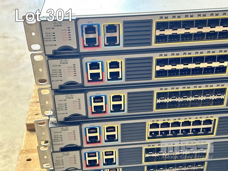 5 x CISCO ME 3600X SERIES 24-PORT SWITCHES, ME-3600X-24FS-M V01, EACH 2 x PSU 1 x CISCO ME 3600X SERIES 24-PORT SWITCH, ME-3600X-24TS-M V01, 2 x PSU S/N:FOC1547X15M, FOC1547X14A, FOC1549V3JQ, FOC1548V1VM, FOC1549X1Y5, FOC1549V3J6