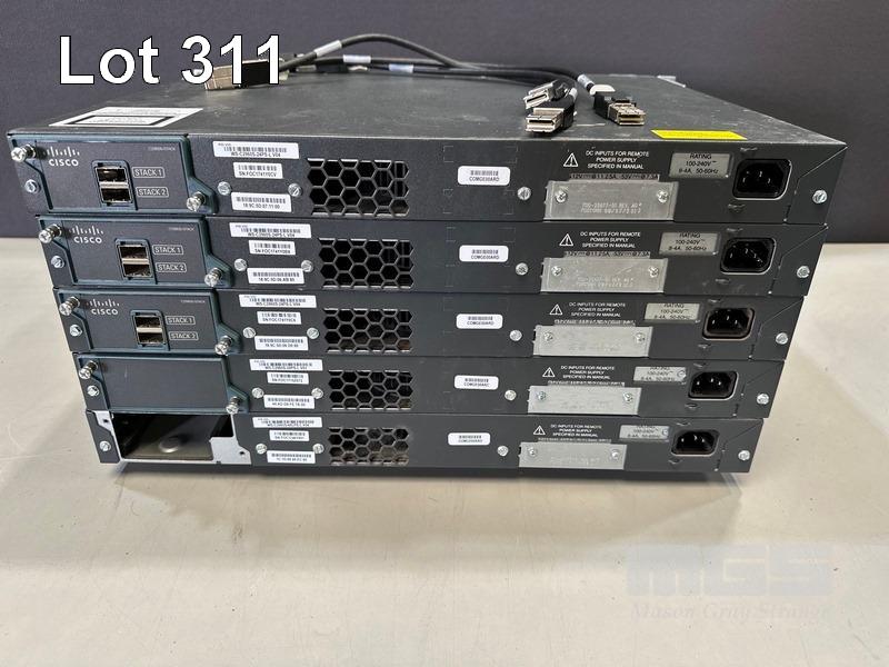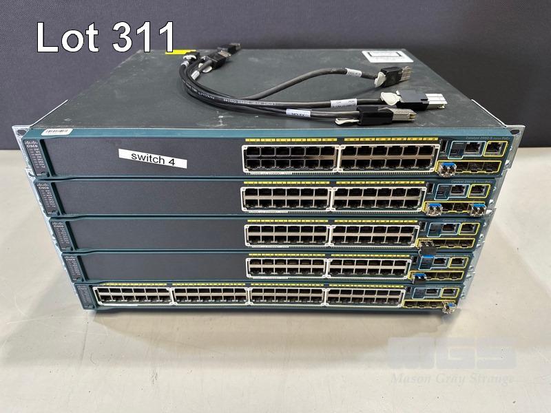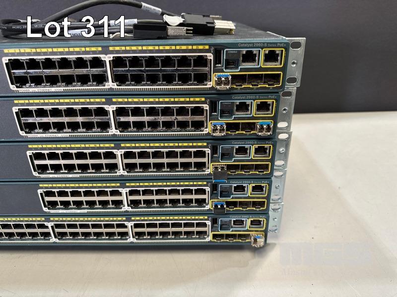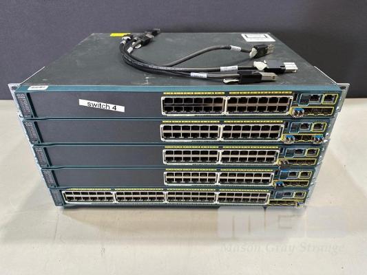 3 x CISCO CATALYST 2960-S SERIES PoE+ 24-PORT SWITCHES, WS-C2960S-24PS-L V04 WITH C2960S-STACK MODULES & STACKING CABLES 1 x CISCO CATALYST 2960-S SERIES PoE+ 24-PORT SWITCH, WS-C2960S-24PS-L V03 1 x CISCO CATALYST 2960-S SERIES PoE+ 48-PORT SWITCH, WS-C2960S-48LPS-L V04 S/N:FOC1741Y0CV, FOC1741Y0BX, FOC1741Y0C6, FOC1715Z072, FOC1746Y951