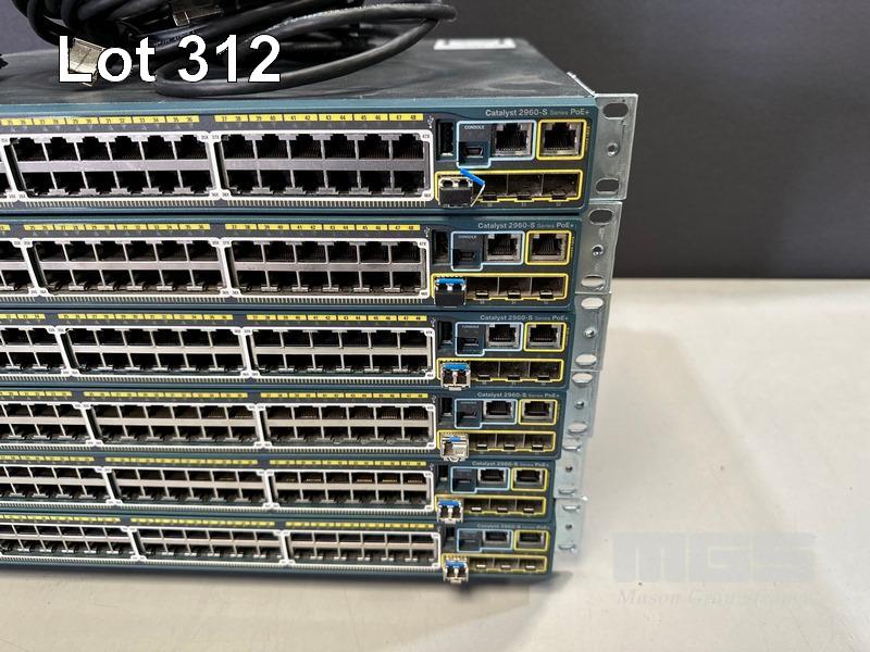 6 x CISCO CATALYST 2960-S SERIES PoE+ 48-PORT SWITCHES, WS-C2960S-48LPS-L V03 WITH C2960S-STACK MODULES & STACKING CABLES S/N:FOC1714Y1D6, FOC1714X0MV, FOC1714X0NY, FOC1714Y1DH, FOC1714Y1DA, FOC1714Y15G