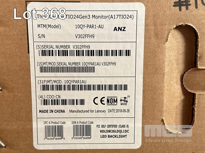(SEALED IN BOX) MONITOR, LENOVO THINKCENTRE TIO24Gen3 23.8" LED-BL LCD WIDESCREEN, MODEL 10QY S/N:SV302FFH9